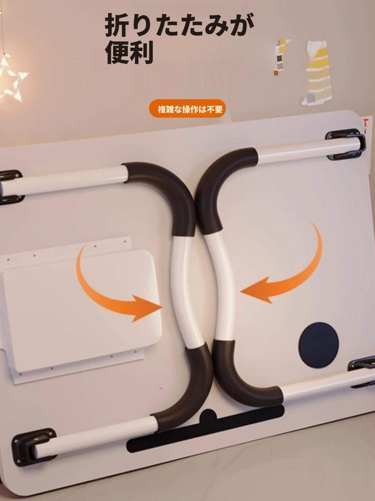 学生寮に最適!折りたたみ式昇降デスク - ベッド上でも使える快適な学習・作業空間を提供するパソコンデスク。家での書き物やオフィスワークにも最適なコンパクトデザイン!