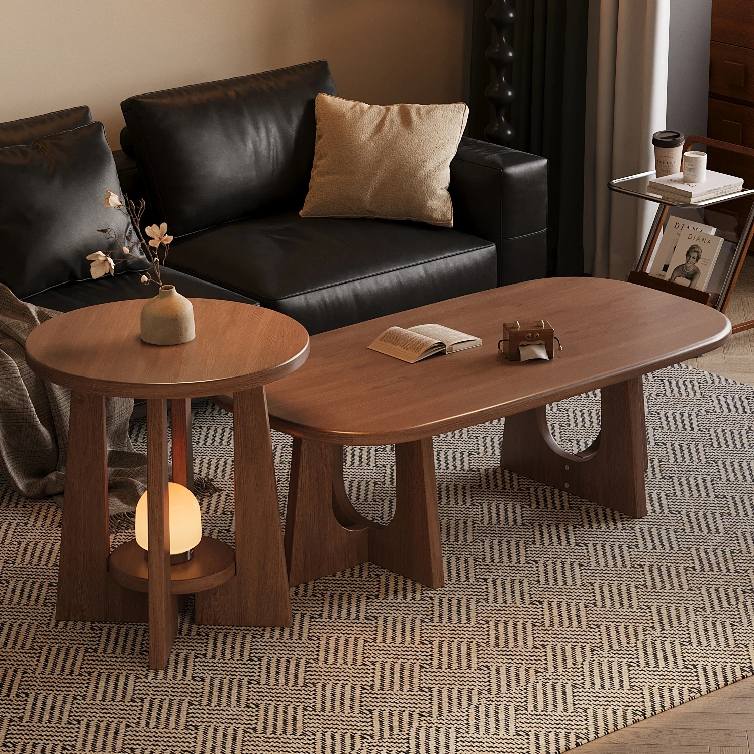 Modern Minimalist Solid Wood Coffee Table Set - Versatile Small Round End Table for Living Room & Balcony, Easy to Move, Perfect for Tea Time!