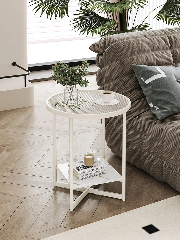 Modern Minimalist Luxury Side Table - Versatile Iron Bedside Storage Cabinet, Perfect for Living Room or Bedroom, Easy to Move, Stylish Small Tea Table for Cozy Spaces.