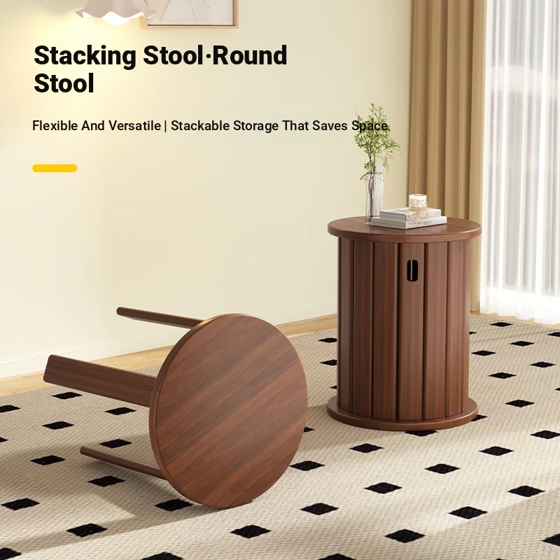 Solid Wood Round Stool - Versatile Tea Table Side Stool, Stacking Design for Home Use, Creative Dining Table Stool, Foldable Chair, Chinese Style Nested Seating Solution