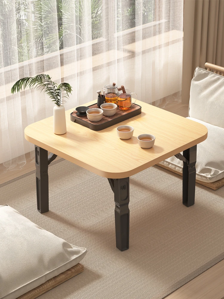 Foldable Square Table for Bay Windows - Compact Tea Table, Tatami Low Dining Table, Easy Home Use Bedside Desk, Perfect for Meals and Study