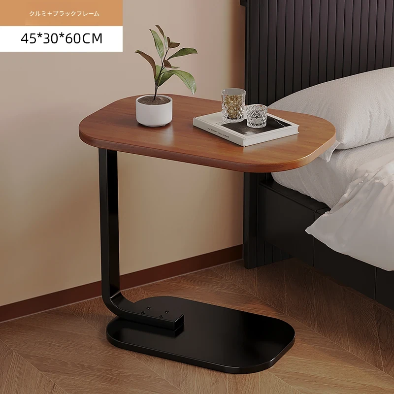 【C型サイドテーブル】45*30*60【ウッドカラー-黒フレーム】