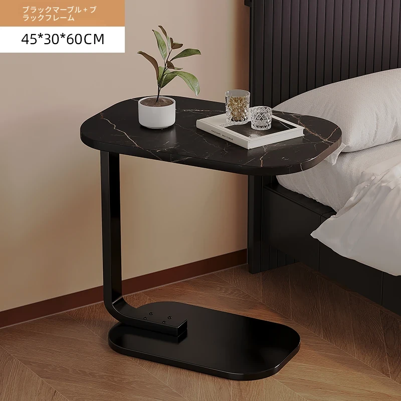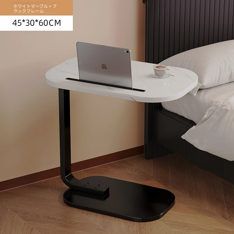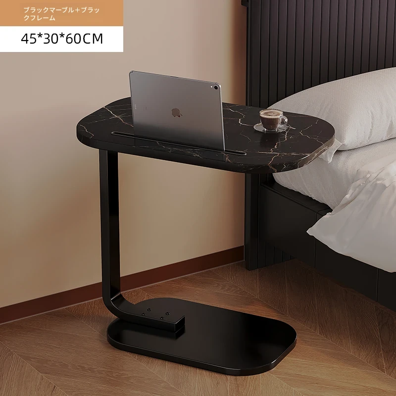 【C型サイドテーブルアップグレードスロットタイプ】45*30*60【白大理石-黒フレーム】