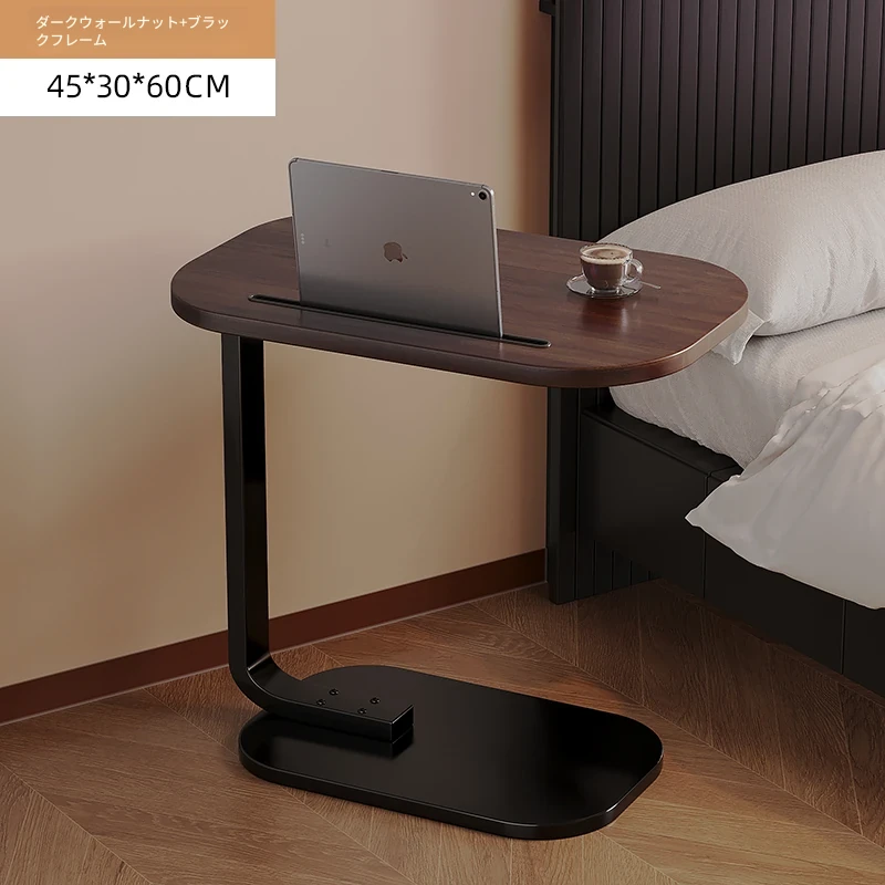 【C型サイドテーブルアップグレードスロットタイプ】45*30*60【ダークウォールナット-黒フレーム】