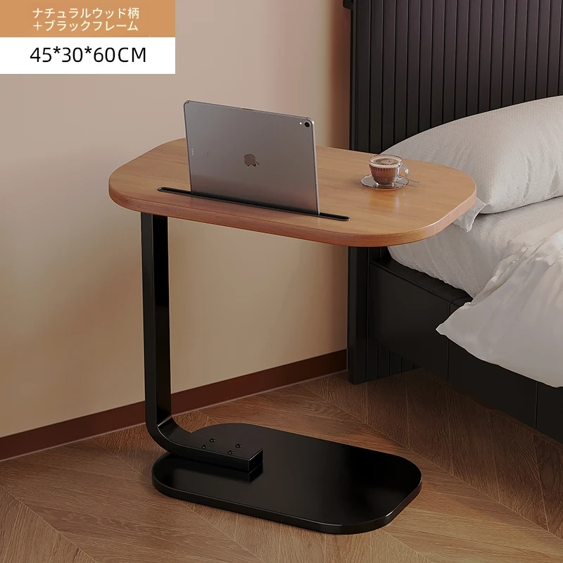 【C型サイドテーブルアップグレードスロットタイプ】45*30*60【ウッドパターン-黒フレーム】