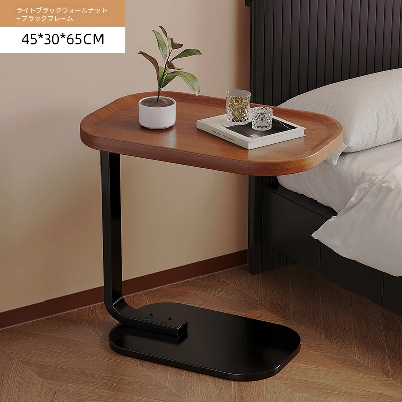 【C型加厚サイドテーブル】45-30*65【ウォールナット色-黒フレーム】