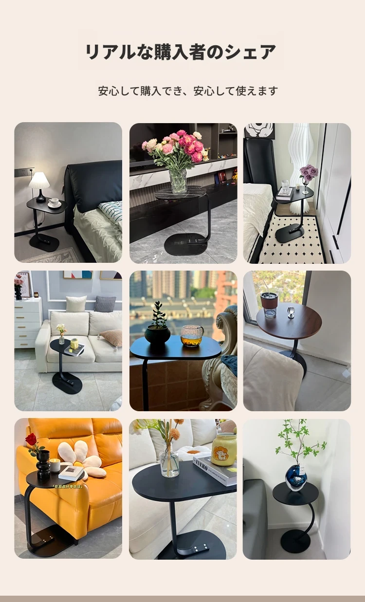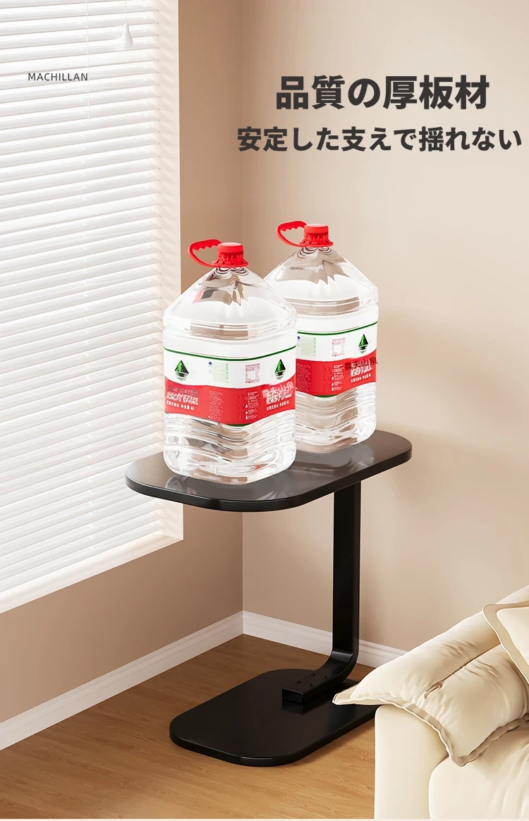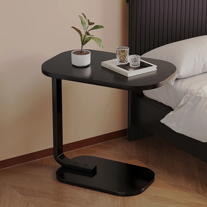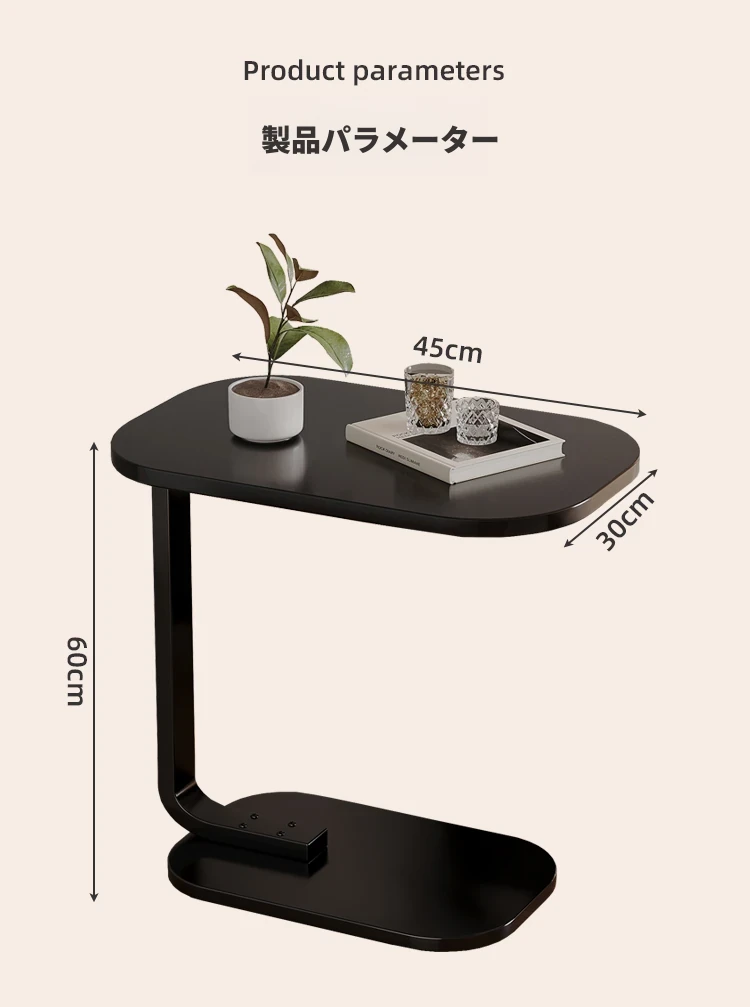 【C型サイドテーブル】45*30*60【真っ黒-黒フレーム】