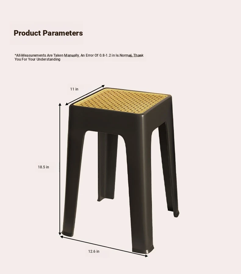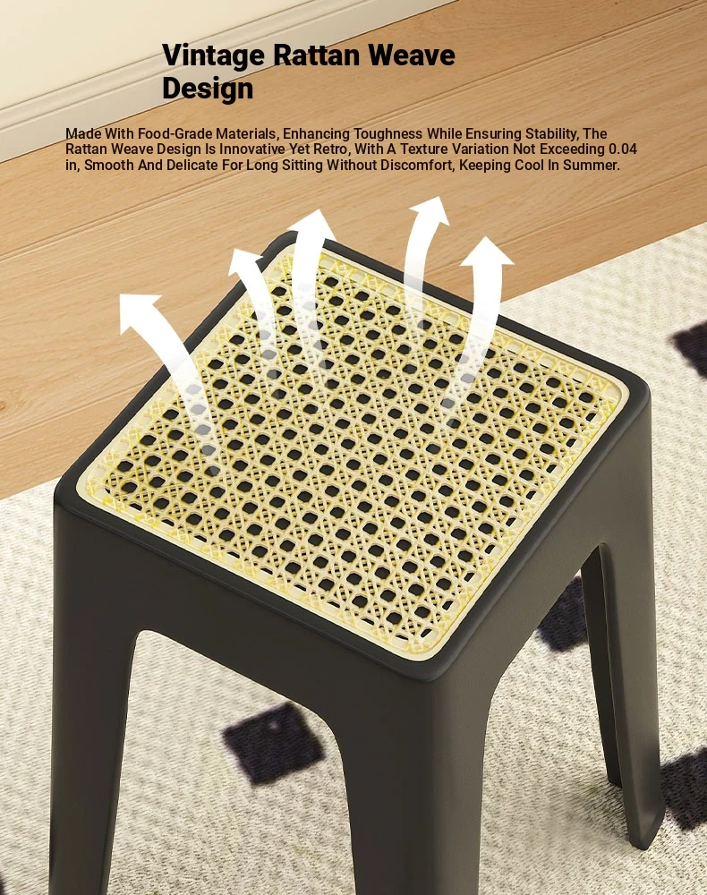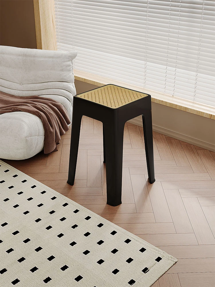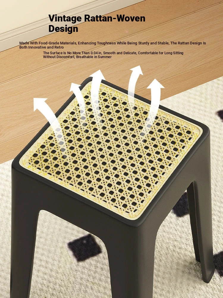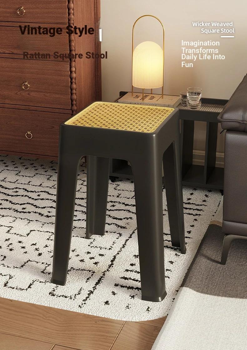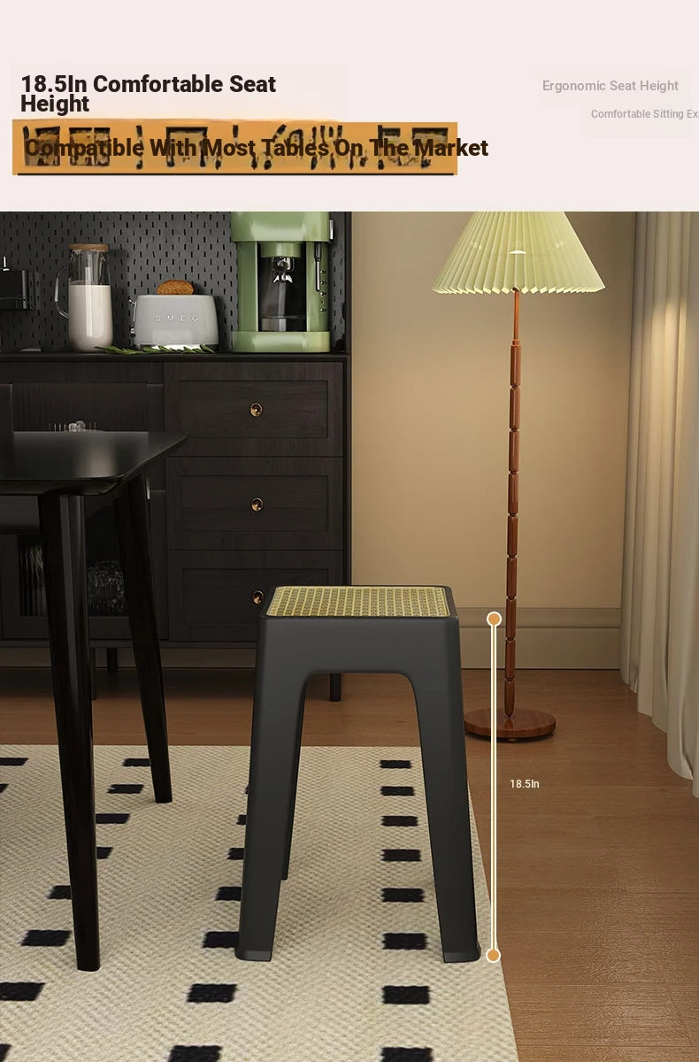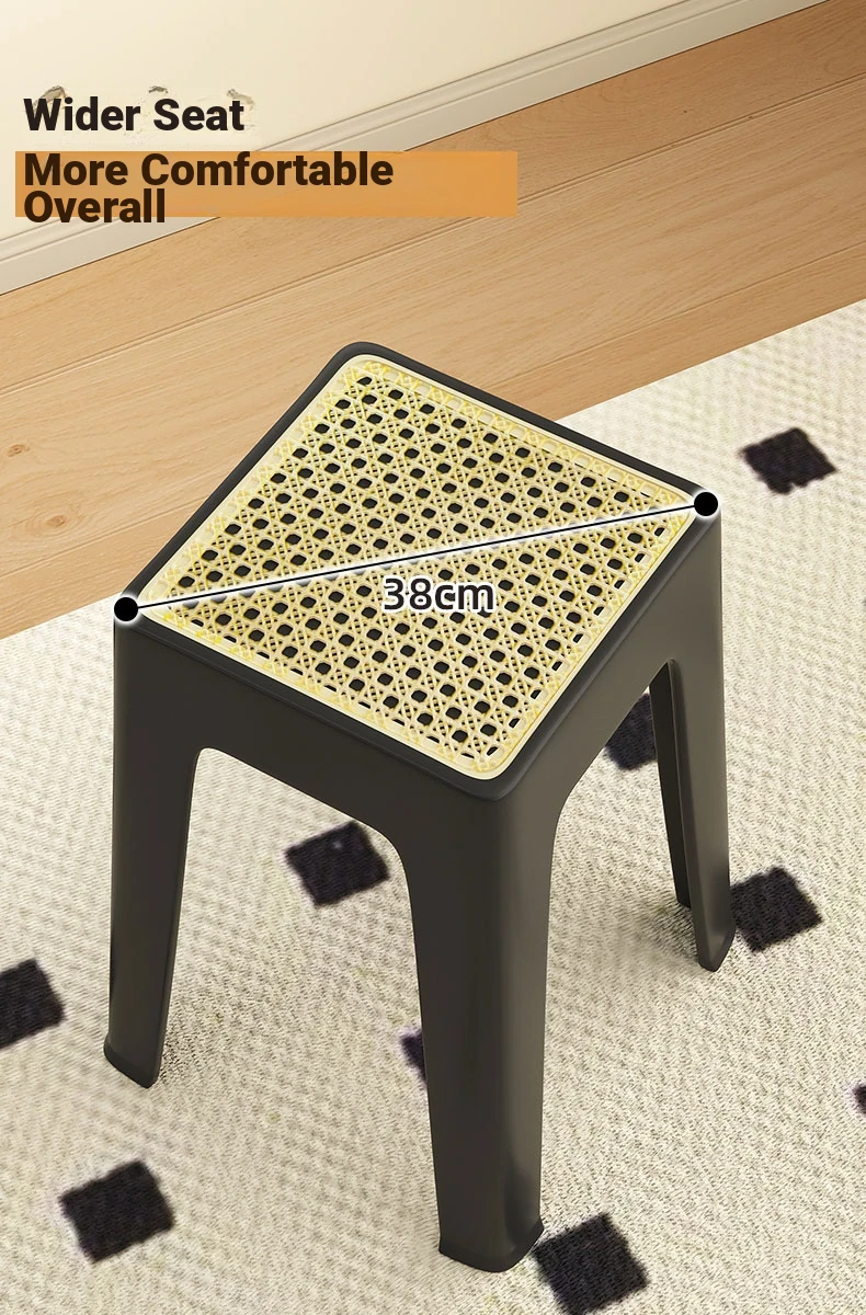 Vintage-Style Plastic Stool with Rattan Weave - Thickened, Stackable Chair for Home Use - Square High Bench for Living Room and Dining Table Backup Seating