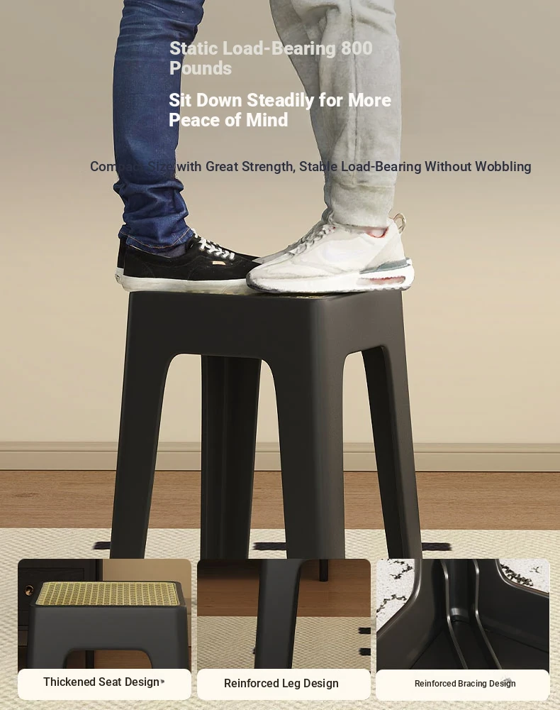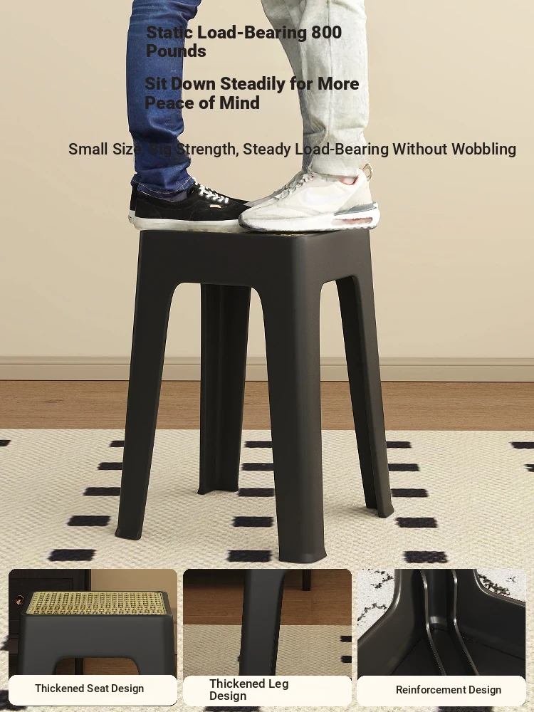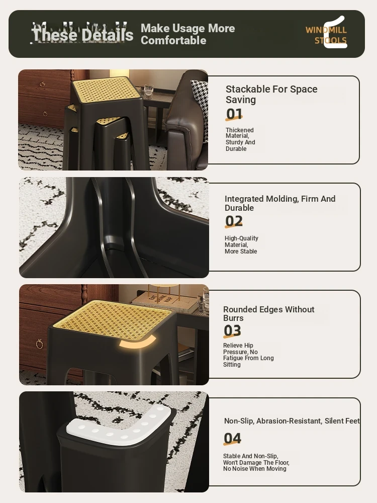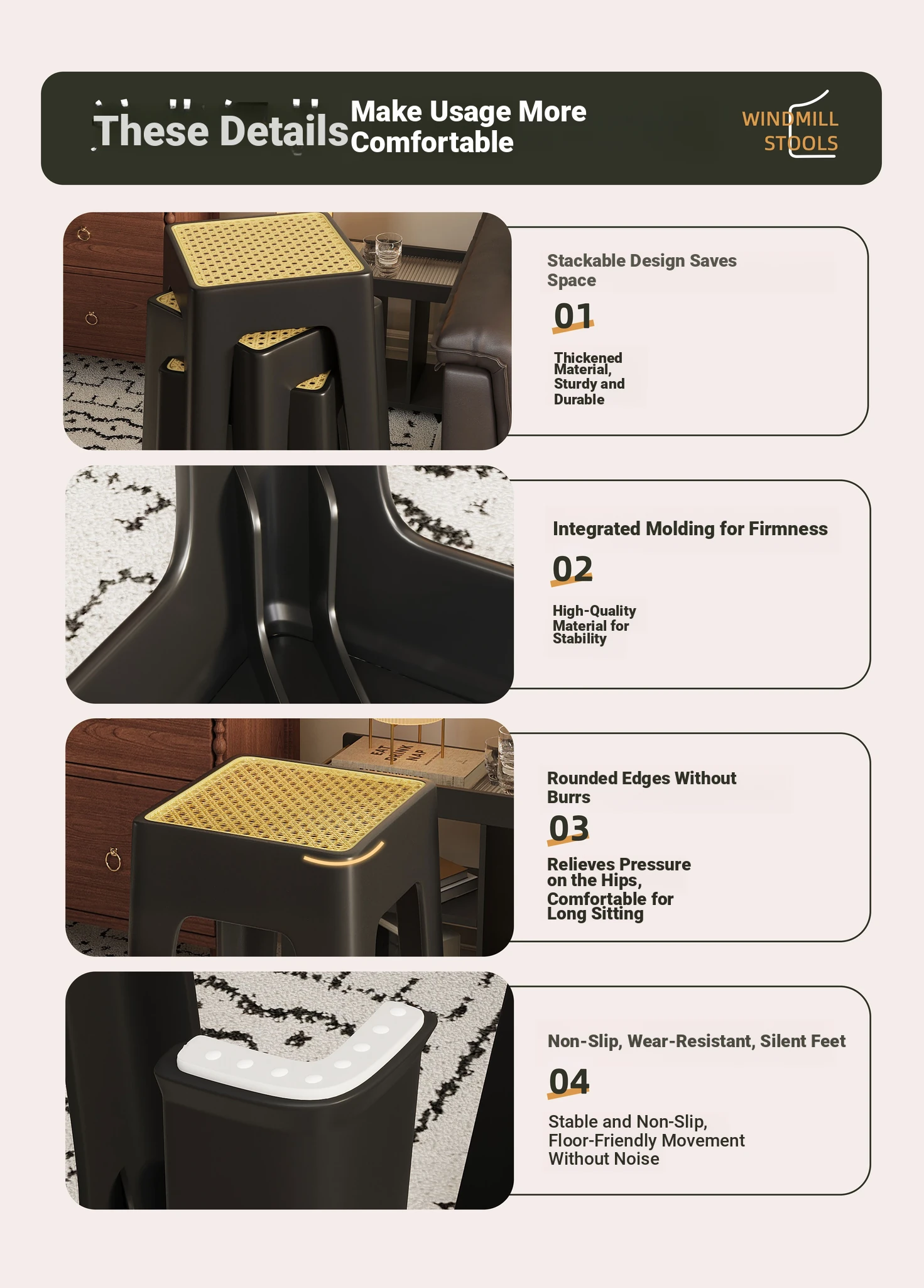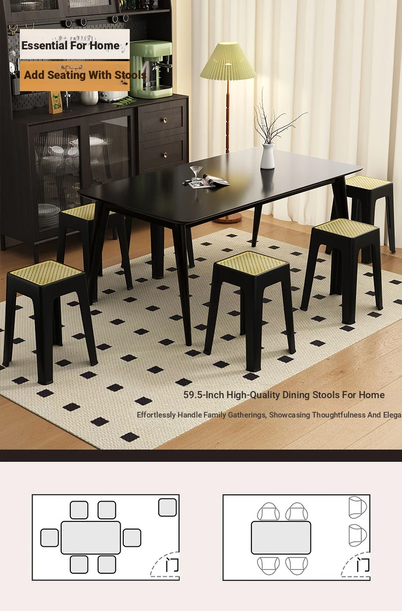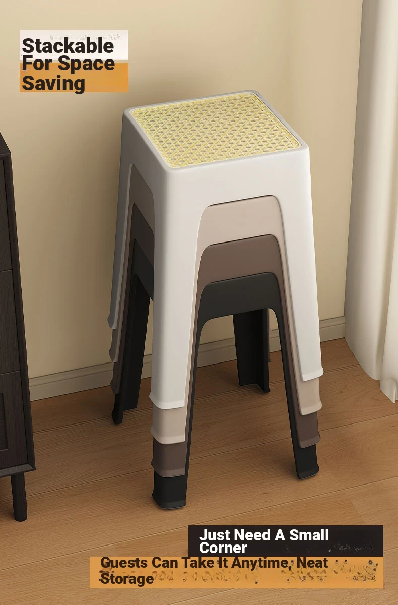 Vintage-Style Plastic Stool with Rattan Weave - Thickened, Stackable Chair for Home Use - Square High Bench for Living Room and Dining Table Backup Seating